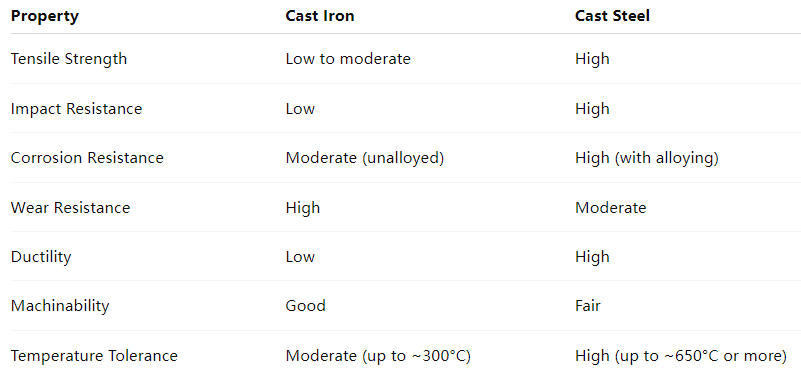 وقتی صحبت از عملکرد مکانیکی به میان میآید، فولاد ریختهگری تقریباً در هر جنبه از چدن بهتر است. فولاد ریخته گری استحکام کششی، مقاومت در برابر ضربه و چقرمگی بالاتری را نشان می دهد. این ویژگیها آن را برای محیطهای پرفشار و دمای بالا و همچنین کاربردهایی که در معرض ضربه و لرزش مکانیکی قرار دارند، مناسب میسازد.